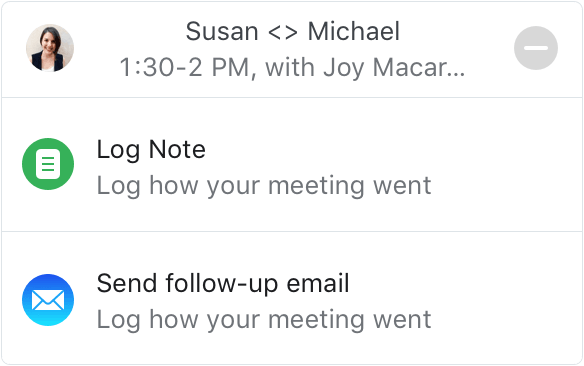 The best time to log a meeting to Salesforce is right after it happens, wherever you are. We make it a matter of 30 seconds and a few taps.